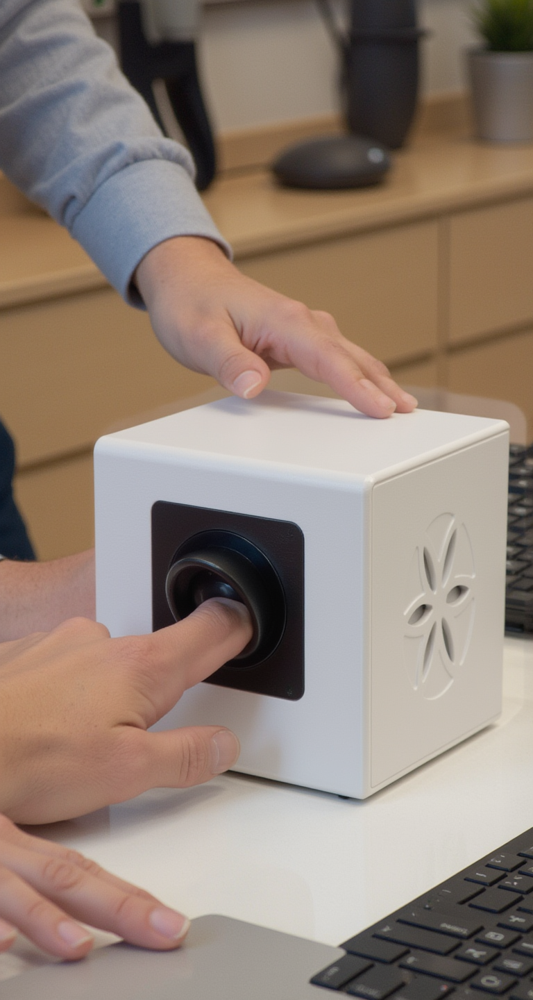 Place your fingertips on the device’s sensor, and with a gentle, quick and non-invasive process, it captures the light you emit and from there maps out your biofield using Gas Discharge Visualization (GDV) technology.
